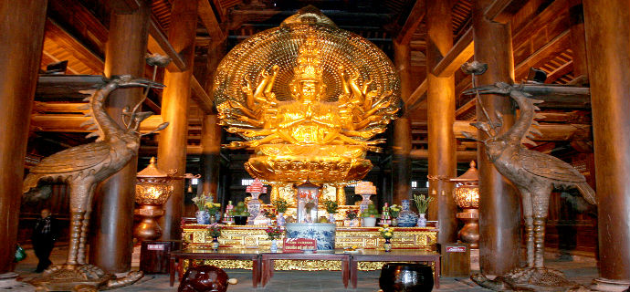 10:30 – Arrive Glimmering Bai Dinh pagoda complexes, the largest pagoda, not only in Vietnam but also in Southeast of Asia. Scenically set on the foot hill of Dinh Mountain surrounded by amazing views of the exquisite river valley below and dotted and the limestone karsts dotted around which will take your breath away.