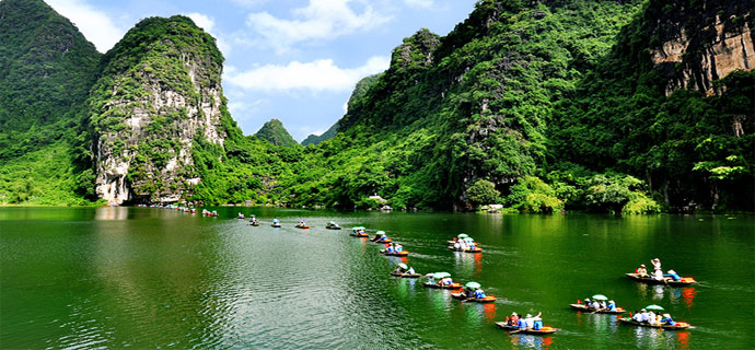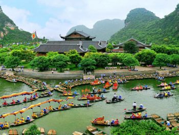 13:30 -Leave for the Trang An Grottoes, an out-standing natural beauty of majestic limestone massif at 20 square kilometer rise dramatically out from rice paddy fields.